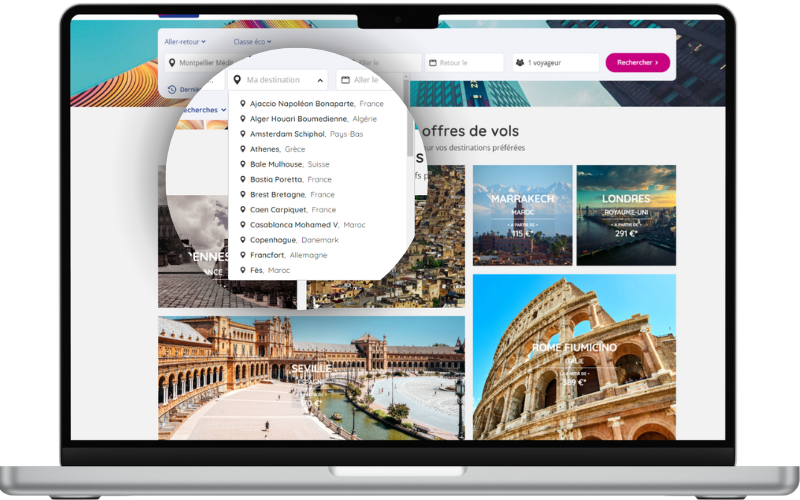In the search engine, only destinations served by your airport can be suggested in the "My destination" field.